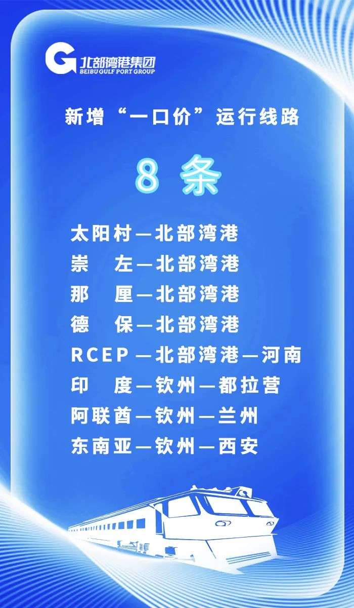 2022年,北部湾港集团旗下北港物流、北部湾联运加强与通道沿线政府部门、平台公司、铁路部门联动,加密开行渝桂、川桂、滇桂、黔桂等海铁联运班列,重点拓展区内班列辐射范围;持续在铁路运价下浮政策上释放红利,提升通道市场竞争力。截至6月30日,新增“太阳村—北部湾港”、“崇左—北部湾港”、“百色—北部湾港”、“印度—钦州—都拉营”等8条一口价线路,西部陆海新通道服务范围拓展至14省54市105站点。