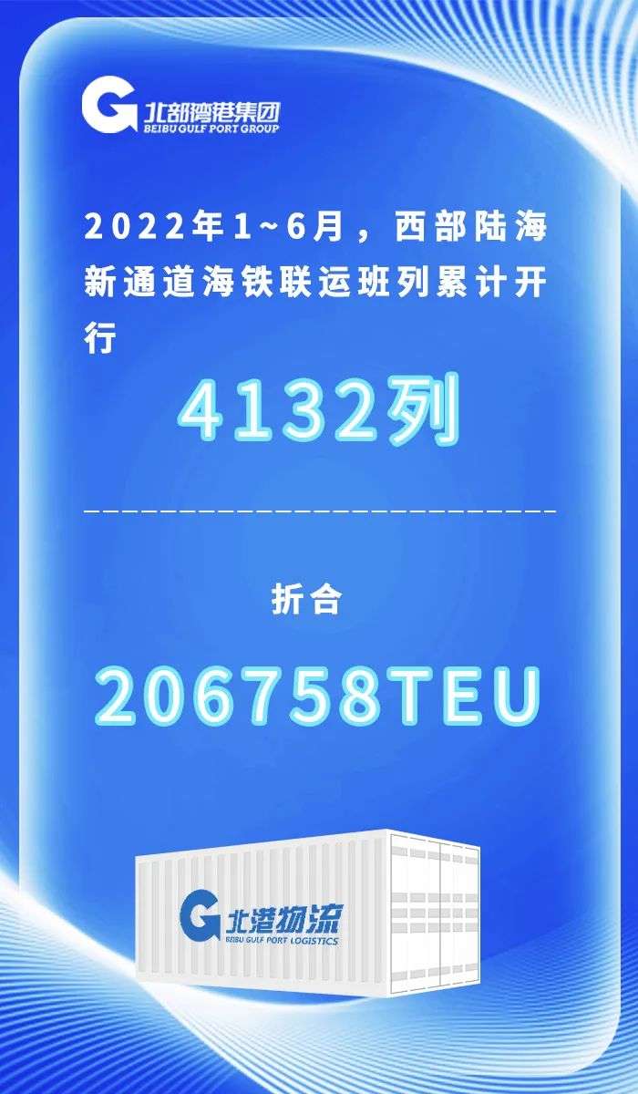 据6月30日统计数据显示,2022年西部陆海新通道海铁联运班列开行4132列、折合206758TEU,同比增长42%,对照年度7000列战略目标,超时间进度9.7%。