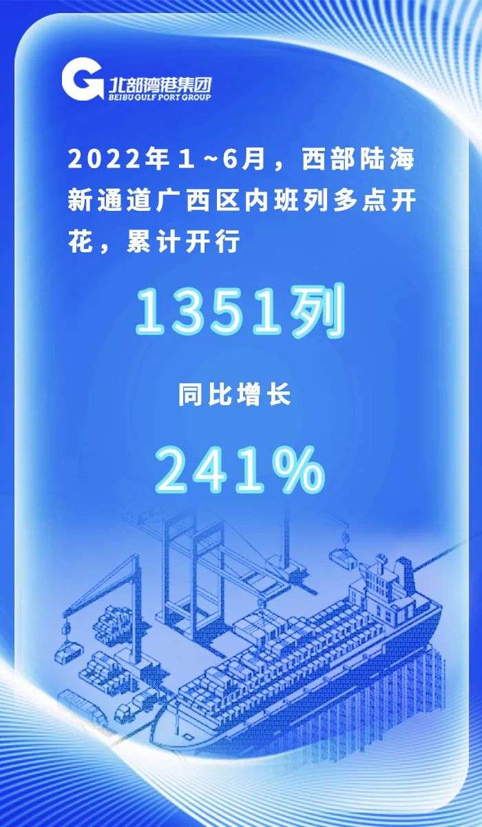 截至6月30日,2022年西部陆海新通道广西区内班列开行量达1351列,同比增长241%,区内班列多点开花,助力广西特色货源走出山区、走向全国、走向海外。