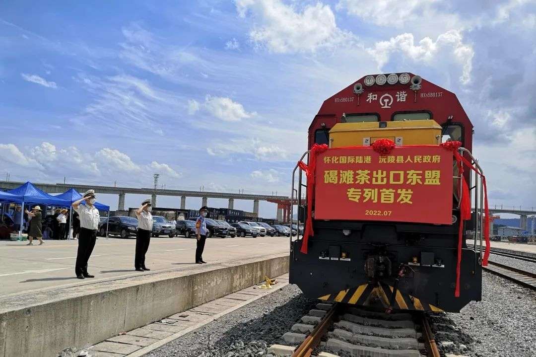这是怀化国际陆港乃至湖南省的首趟茶叶货运专列,也是怀化国际陆港实施“怀品出怀”战略任务以来,首次承运出口值超过千万元人民币的怀化本土产品。