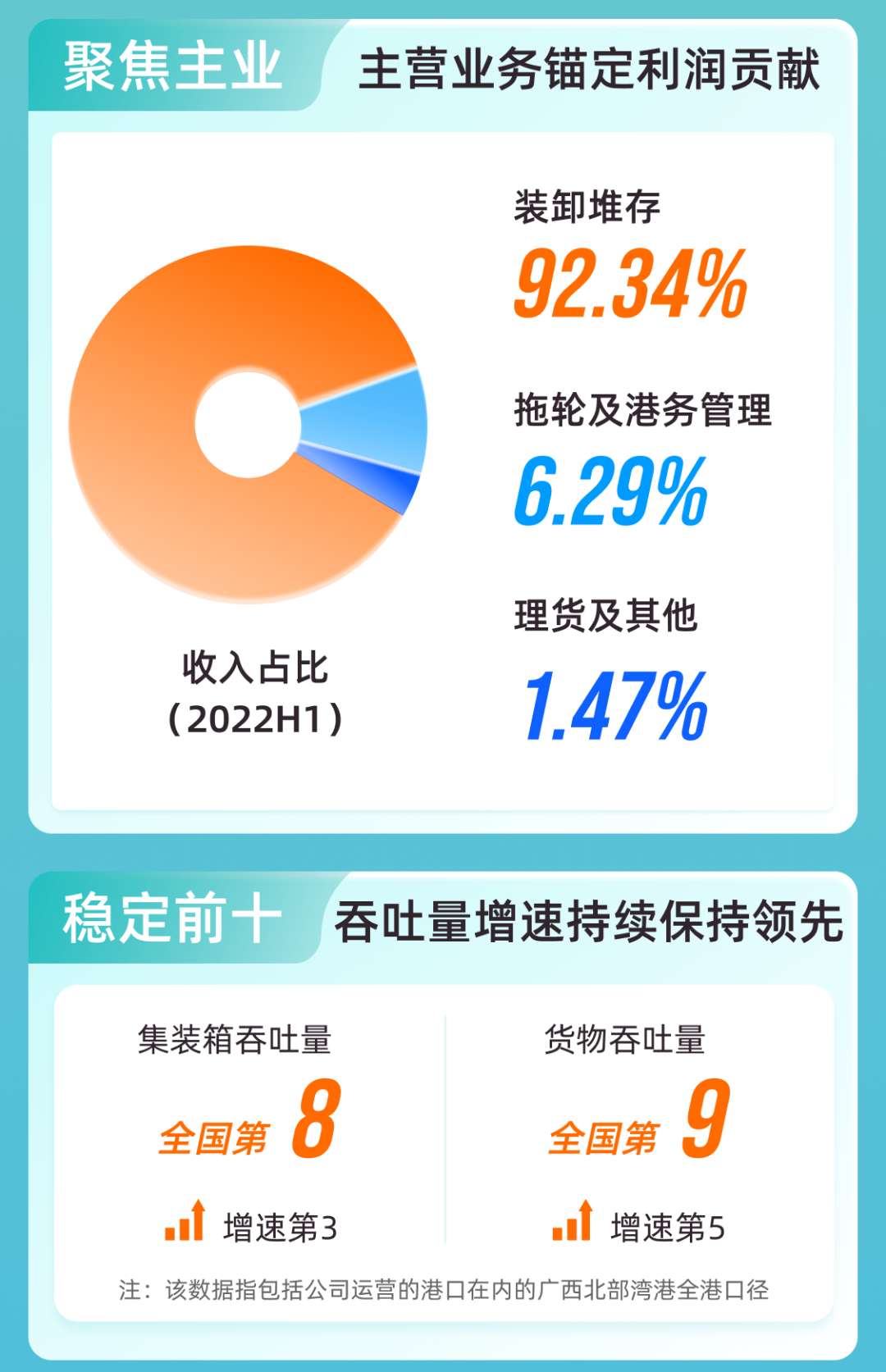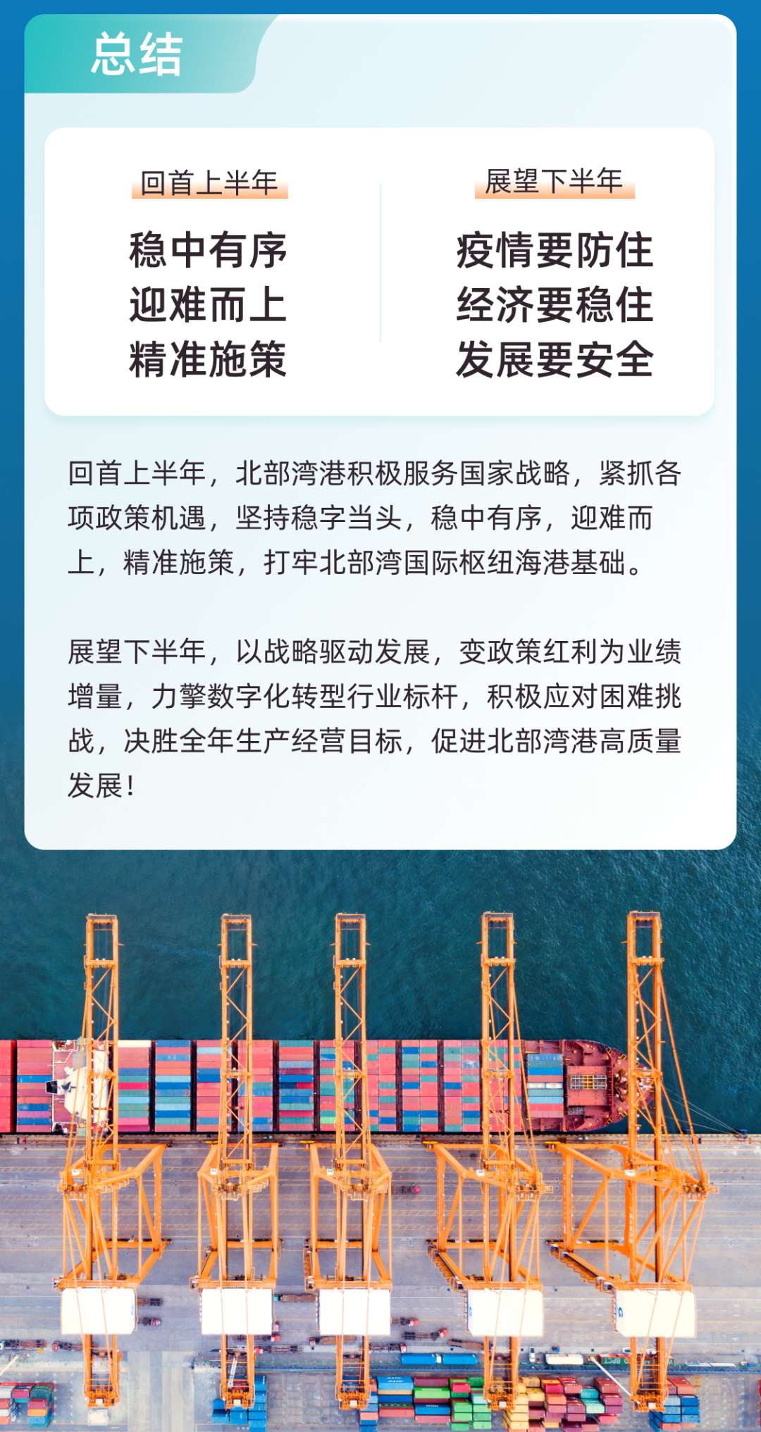 8月20日,北部湾港(000582)发布了2022年半年度报告。今年上半年,北部湾港股份以高质量党建引领高质量发展,公司上下对标年度生产经营任务目标,强化生产经营管理,迎难而上、齐心协力、顽强拼搏,生产经营成绩保持稳步增长。