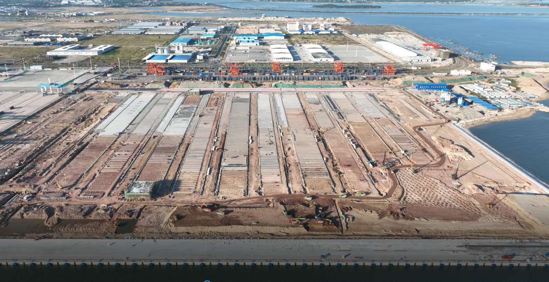 作为北部湾港践行西部陆海新通道建设主力军、全力打造“四个一流”国际门户枢纽港的标杆项目,钦州港大榄坪南作业区9号、10泊位工程自建设伊始,项目团队就坚持以高标准、高质量为导向,以创建“平安百年品质工程”为目标,充分发挥“勇于担当、奋发有为”的北部湾港人精神,通过与各参建单位精诚合作,积极探索智慧交通、大型沉箱重力式码头施工全流程技术创新与应用,率先在北部湾港口建设中,应用大型沉箱智能化安装技术、大型沉箱墙段钢筋整体绑扎吊装技术、装配式沉箱关键技术、沉箱基床抛石振平技术、BIM技术系统化应用、装配式护轮坎应用、临时护岸模袋砼应用等新技术、新工艺共11项。