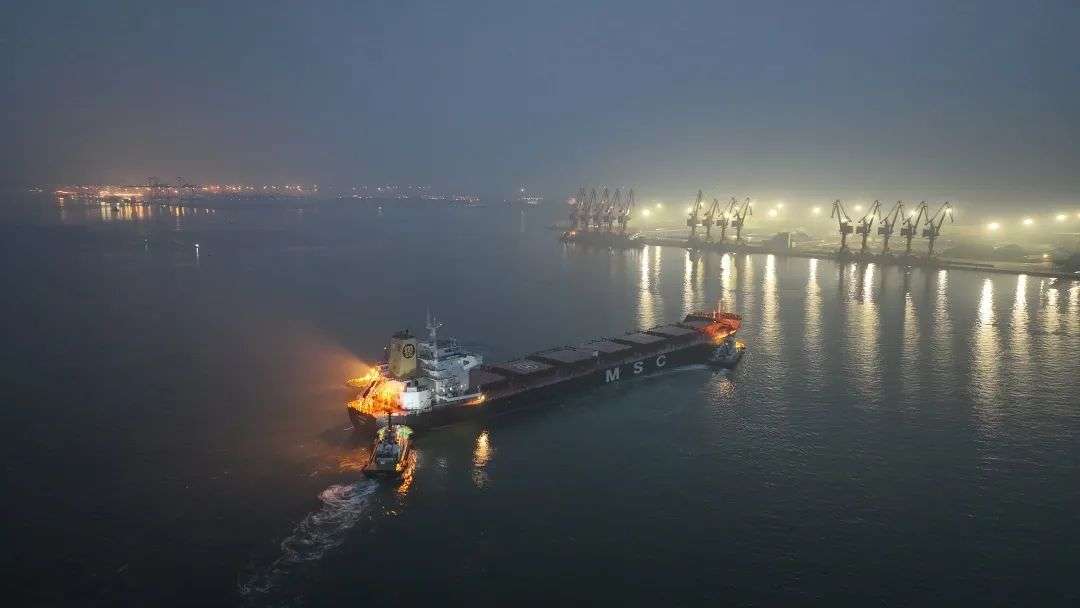 在3艘拖轮的协助下,一艘巨轮稳靠钦州港区大榄坪南作业区13#泊位,它就是巴拿马籍“安纳斯塔西娅”轮。