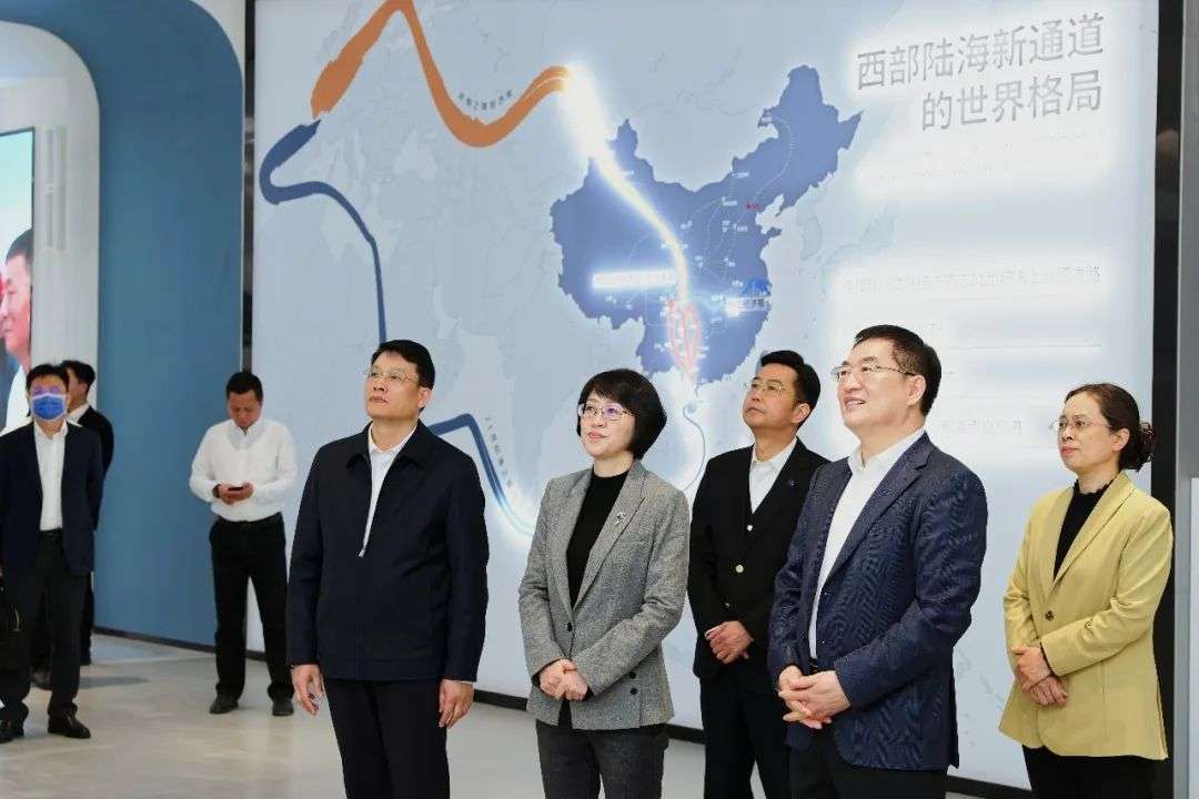 在展厅,北部湾港集团党委书记、董事长李延强边走边介绍,详细汇报了北部湾港集团参与西部陆海新通道建设的情况,以及近年来的发展成果。