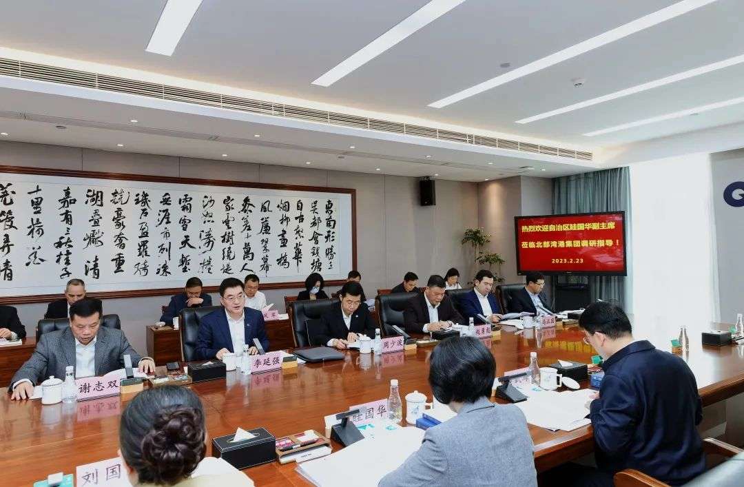 2月23日下午,自治区副主席眭国华率队到北部湾港集团开展调研,并召开座谈会。这是她担任自治区副主席以来首次到北部湾港集团调研指导工作。