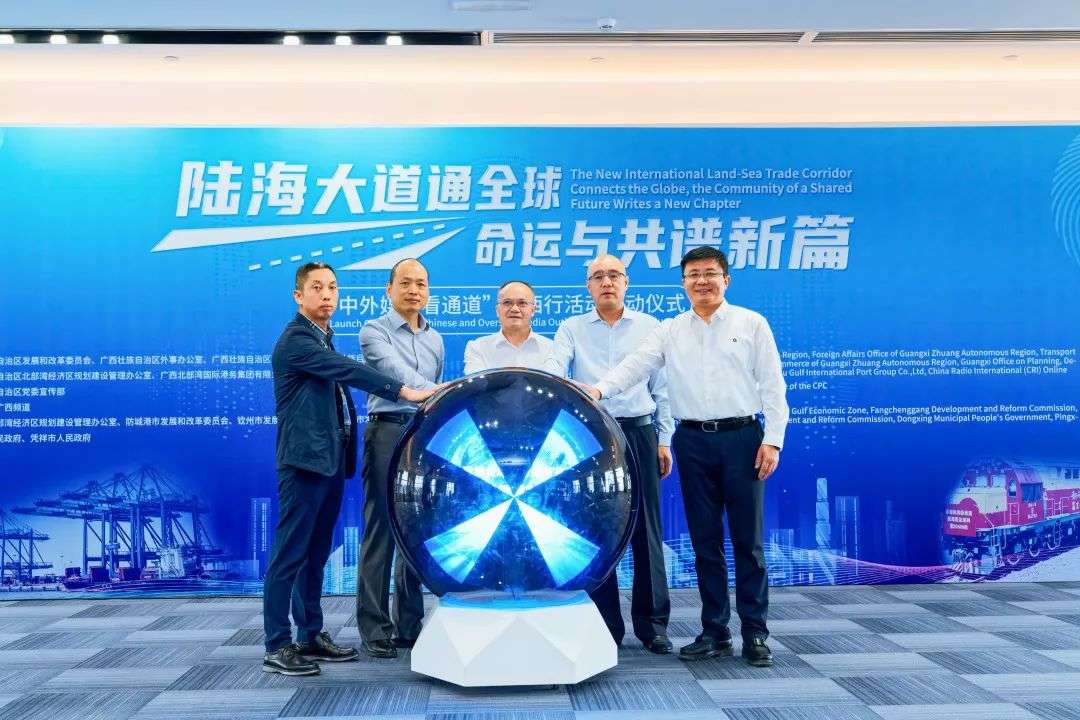5月15日,“陆海大道通全球·命运与共谱新篇”——“中外媒体看通道”广西行活动在南宁北部湾航运中心举启动。本次活动由自治区发展和改革委、自治区外事办、自治区交通运输厅、自治区商务厅、自治区北部湾办、北部湾港集团、中央广播电视总台国际在线共同主办,自治区党委宣传部具体指导,国际在线广西频道承办。