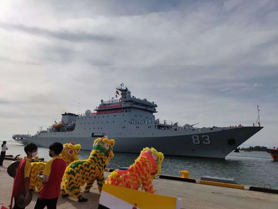 6月5日上午,中—文友好交流新使者、中国海军训练舰“戚继光”舰停靠北部湾港集团管理运营的摩拉港,对文莱进行为期3天的友好访问。这是“戚继光”舰自2019年首次停靠后再度停靠摩拉港。