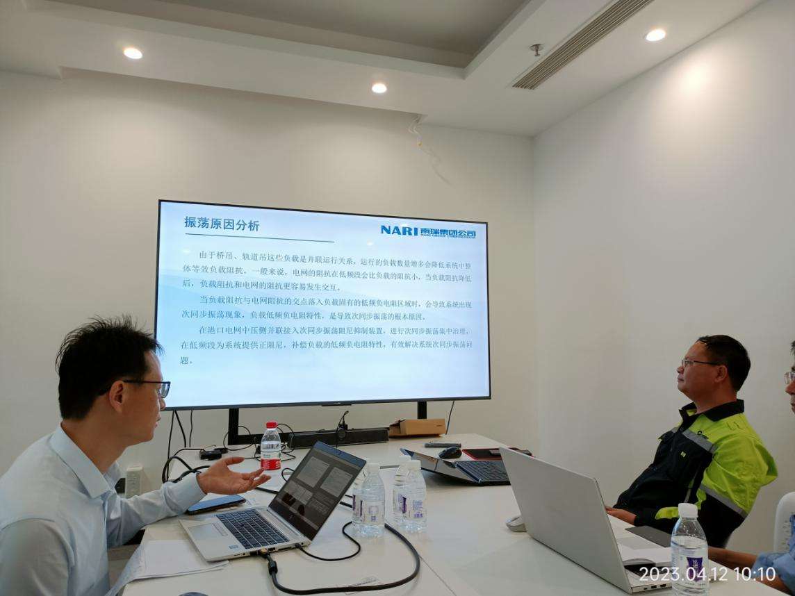 防港集团党委迅速成立技术攻坚专班,并邀请了国电南瑞、广西电力勘察设计研究院、广西大学电气学院等多位权威专家学者、教授到场检测论证,同时派出技术骨干到遇到同类难题的上海洋山港等地学习取经。通过调查研究,结合各港口、各类大容量新能源发电设备接入案例,查明造成电网波动原因,为难点问题打开了突破口。