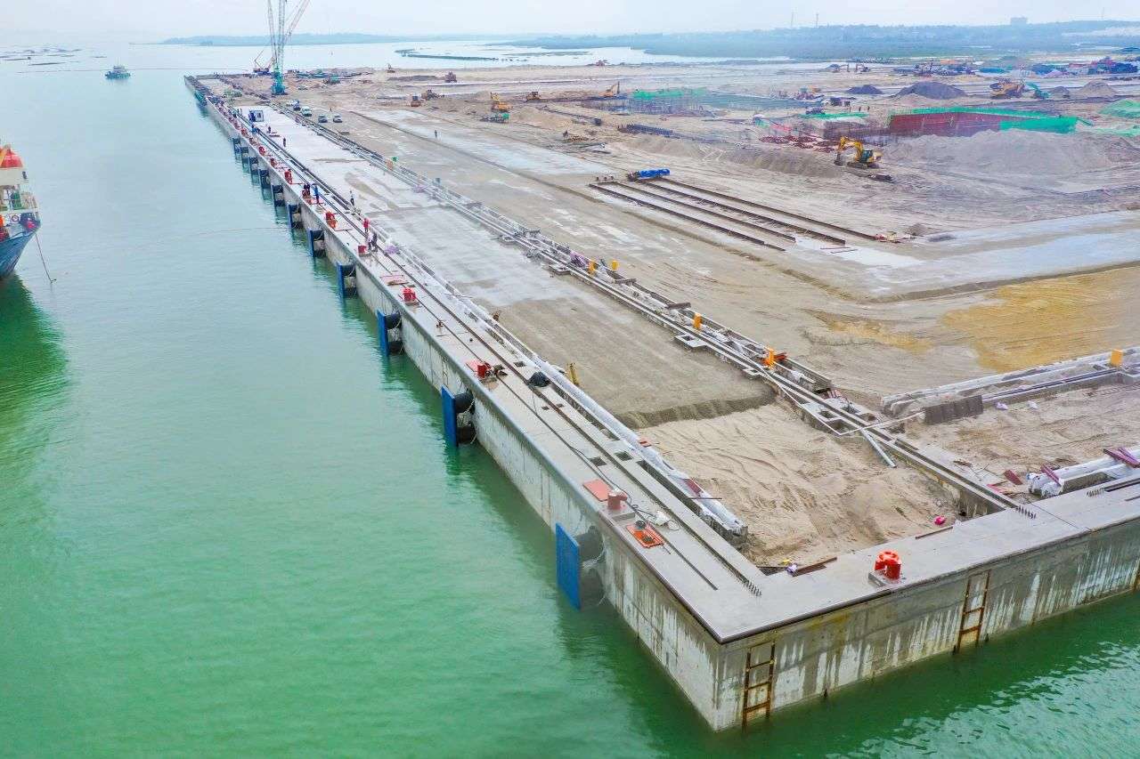 ​​​​​​​       作为《西部陆海新通道北部湾国际门户港基础设施提升三年行动计划(2023—2025年)》中的重点在建工程,北海铁山港区东岸码头建设规模为2个10万吨级泊位、3个5000吨级通用泊位,设计年吞吐量620万吨。目前该项目已取得后方陆域形成等关键节点的胜利,配套设备也开始同步进入安装阶段,建成后将有效填补玉林龙潭有工业产业园却没有向海直通码头的“空白”。