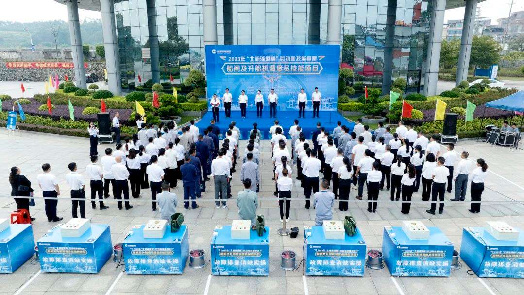 本次船闸及升船机调度员竞赛,包含理论考试、船舶调度实操和故障排查消缺实操三个比赛项目。来自西江集团和陆海新能的11支队伍同台竞技,各展风采。