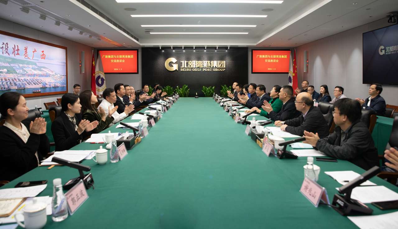1月3日,北部湾港集团党委书记、董事长周少波在北部湾航运中心接待到访的广西旅发集团党委书记、董事长容贤标一行并举行座谈。双方就深入贯彻习近平总书记对广西重大方略要求,落实国家和自治区重大战略,积极对接区域协调发展、深化业务板块合作进行深入探讨并达成广泛共识。