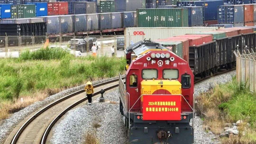 第5000列,出发!2024年西部陆海新通道海铁联运班列提前16天完成上半年目标