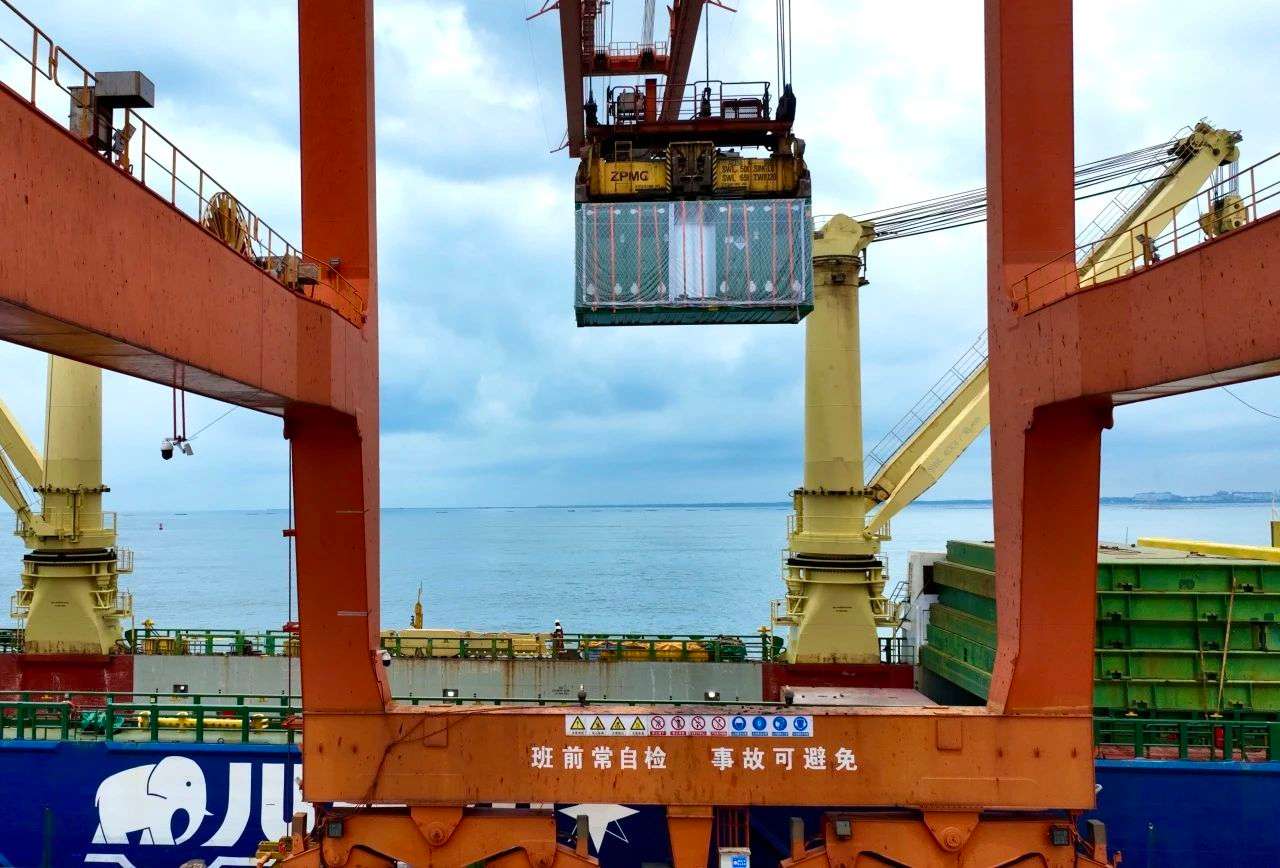 6月21日,在钦州港大榄坪作业区2号泊位,一批锂电池储能柜正吊装到荷兰籍“尊宝美景”轮上,随后这批货物将出口到英国,这是北部湾港首次实现大批量锂电池储能柜整船出口业务。