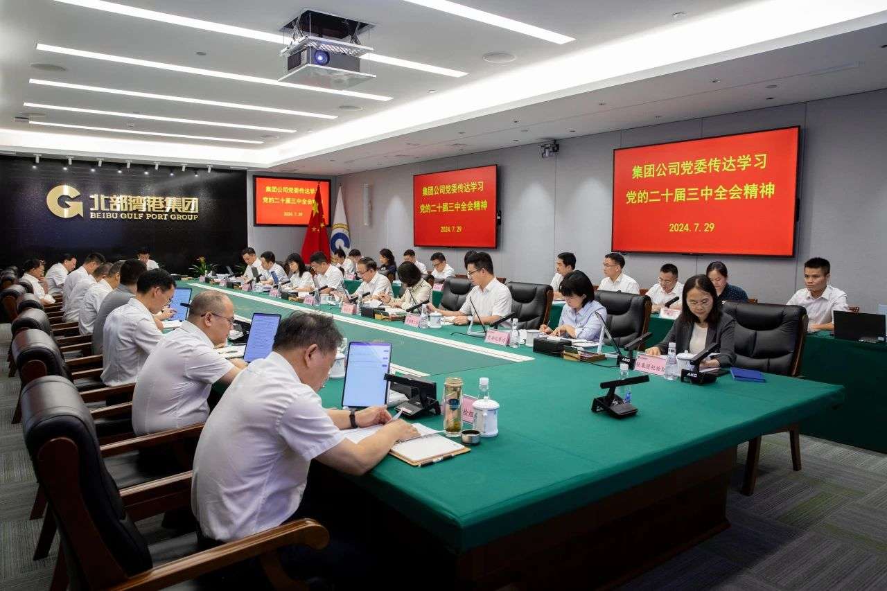 7月29日,北部湾港集团党委召开党委会,传达学习党的二十届三中全会精神,对各级党组织做好学习宣传贯彻落实进行动员和部署。集团公司党委书记、董事长周少波主持会议并讲话。集团公司领导刘胜友、汪旭、马正国、邓远志、向红、潘晓斌、潘料庭参加会议。